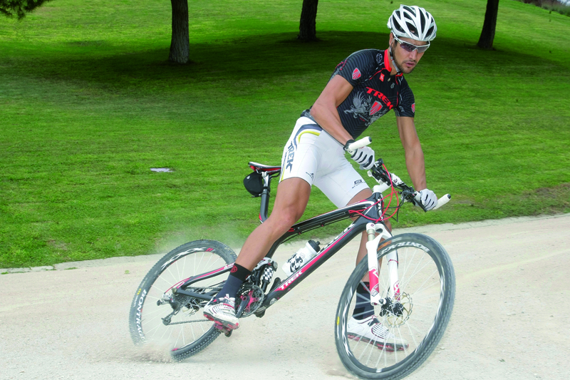 29. Desplaza las rodillas hacia el lado contrario al que te desequilibras. Pruébalo tanto sentado como en pie sobre los pedales, a ver cómo obtienes mejores resultados.